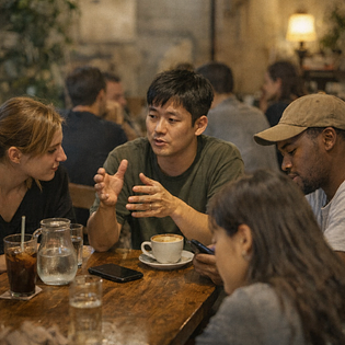 Weekly Language Exchange is a regular meetup focused on real conversations and human connection, not formal language study.